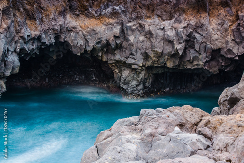 Obraz premium Stunningly beautiful lava caves and cliffs in Los Hervideros after sunset....