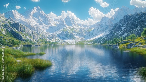Naklejka premium Stunningly Realistic Mountain Landscape with Reflections