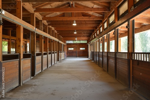 © NASH, Obraz premium Sturdy structure with accessible horse stalls