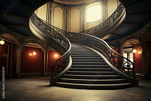 Obraz premium Sturdy Wood staircase house. Cozy abstract. Generate Ai