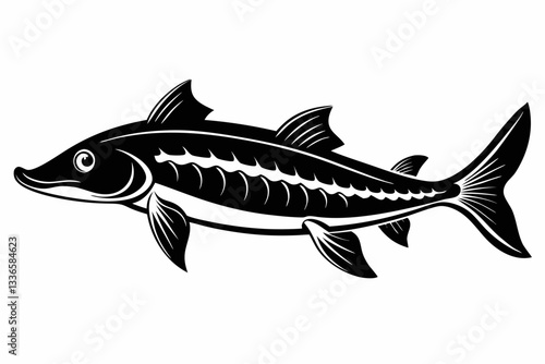 © Pinak, Fototapeta premium sturgeon freshwater fish line art silhouette vector illustration