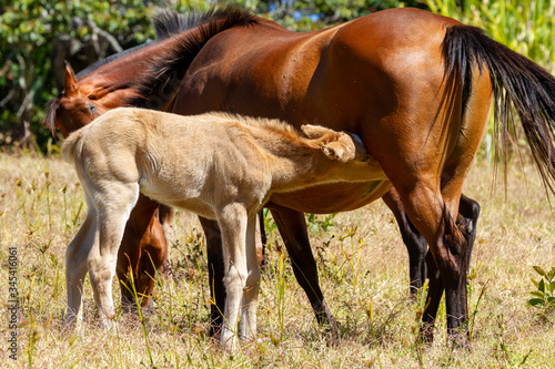 Fototapeta premium Stuten und Fohlen auf der Weide