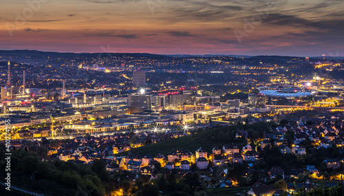 © amyrxa, Obraz premium Stuttgart at night germany skyline aerial view.