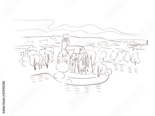 Obraz premium Stuttgart Germany Europe vector sketch city illustration line art