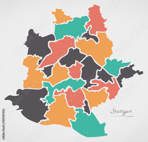 © Ingo Menhard, Fototapeta premium Stuttgart Map with boroughs and modern round shapes