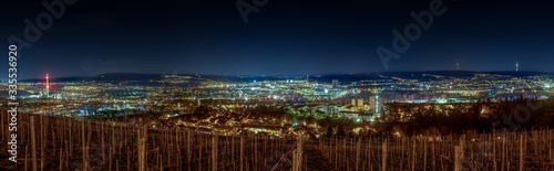 Obraz premium Stuttgart Nacht Panorama mit Fernsehturm, Cannstatt,Talkessel