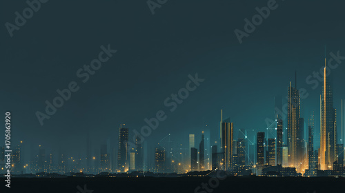 Naklejka premium sTwilight in the Smart digital Innovation city with connection network...