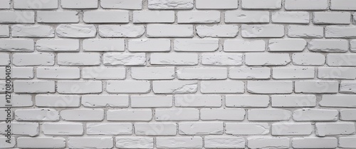 © Shadaw, Naklejka premium style and type of a white brick wall, showcasing a classic and rustic layout. The bricks are arranged in a horizontal pattern, with each row slightly offset from the one above, creating a traditional