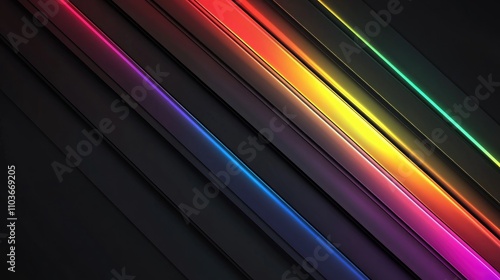© AbstractAI, Obraz premium Stylish abstract background featuring vibrant rainbow light refraction against dark black shadows, ideal for design projects and digital art.