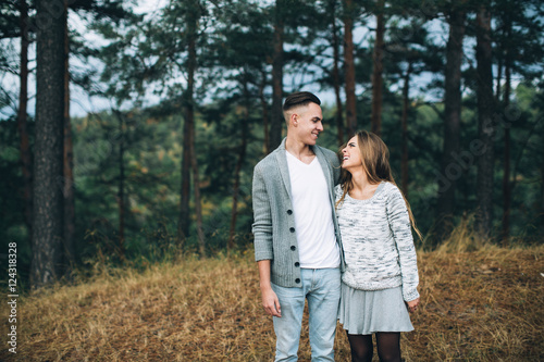 © anatoliycherkas, Fototapeta premium Stylish and fashionable young beautiful happy couple posing. Boho style.