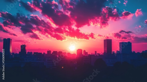 Fototapeta premium Stylish and towering skyscrapers rise above a futuristic urban cityscape at...