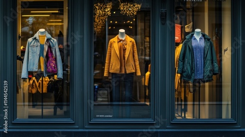 © Fenny, Fototapeta premium Stylish autumn/winter clothing displayed in a boutique storefront window.