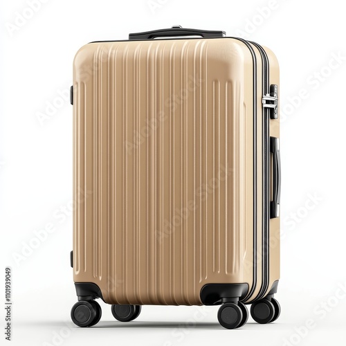 Fototapeta premium Stylish Beige Hard Shell Luggage with Smooth Rolling Wheels