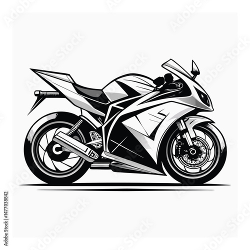 © SUHAG, Obraz premium Stylish Black and White Sports Motorcycle