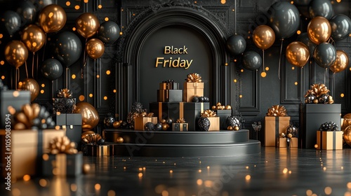 Fototapeta premium Stylish Black Friday ambience with lavish elements.