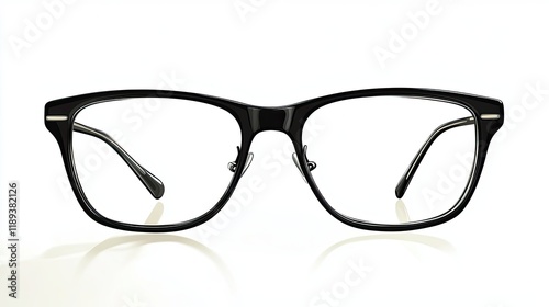 Fototapeta premium Stylish black glasses on a white background, showcasing a modern design ideal for fashion or eyewear-related content.