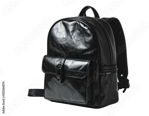 © Adrian, Naklejka premium Stylish Black Leather Backpack with Front Pocket and Handle.