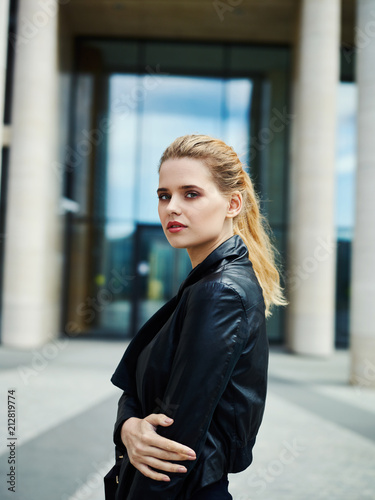 Fototapeta premium Stylish blond businesswoman in jacket