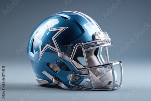 Fototapeta premium Stylish blue football helmet with star emblem displayed against a simple...