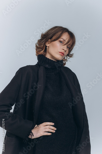 Fototapeta premium Stylish caucasian girl fashion portrait in studio