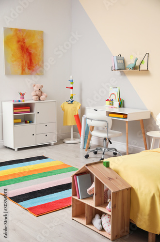 Fototapeta premium Stylish child room interior with comfortable bed and desk