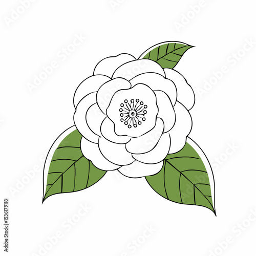 © Jackson Photography, Obraz premium Stylish continuous line camellia flower, perfect for contemporary branding, wall art, and minimalist patterns