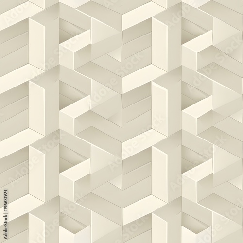 © QITIAN, Obraz premium Stylish 3D geometric pattern in soft beige tones.