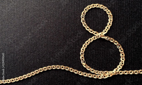 Fototapeta premium Stylish dark card for Women's Day March 8, figure eight made of gold chain on a textured black background. Celebrating International Women's Day. Concept March 8.