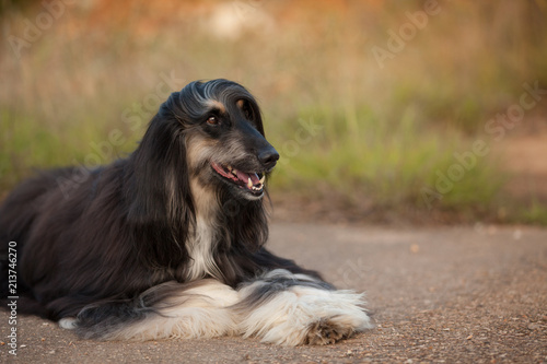 Fototapeta premium stylish dog breed Afghan hound posing while lying