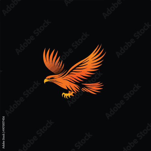 © PUSPO, Obraz premium Stylish Eagle Illustration In Flight With Vivid Orange Gradient Wings On A Clean Black Background