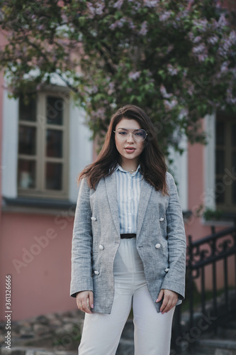 © jozzeppe777, Fototapeta premium Stylish elegant girl walking on the street