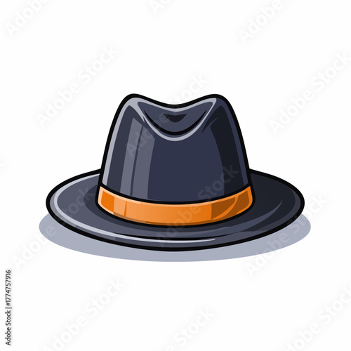 Fototapeta premium Stylish fedora hat illustration with orange band and shadow on white background