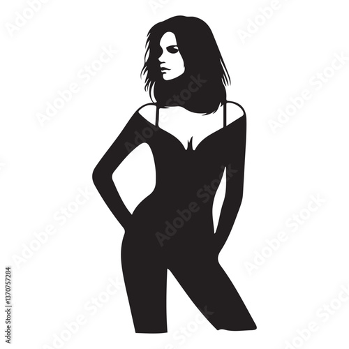 Fototapeta premium Stylish Female Silhouette in Jumpsuit Vector Art Graphic Design