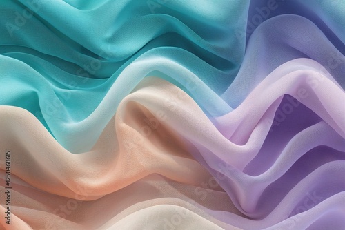 Fototapeta premium Stylish Gradient Pattern in Turquoise Peach and Lavender on Textured Light Beige Fabric