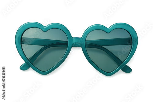 Fototapeta premium Stylish heart-shaped teal sunglasses for summer fashion and love accessories...