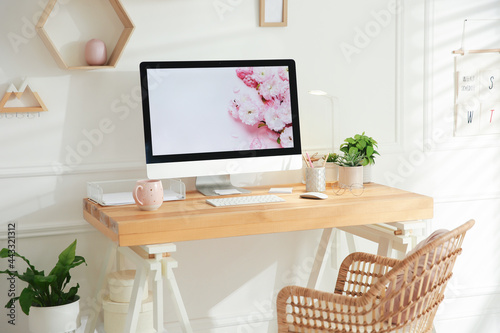 © New Africa, Obraz premium Stylish home office interior with comfortable workplace