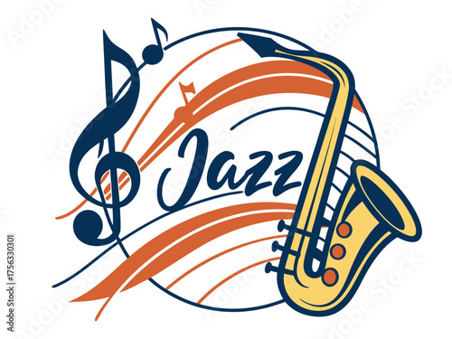Fototapeta premium Stylish Jazz Music Vector with Saxophone and Treble Clef Design