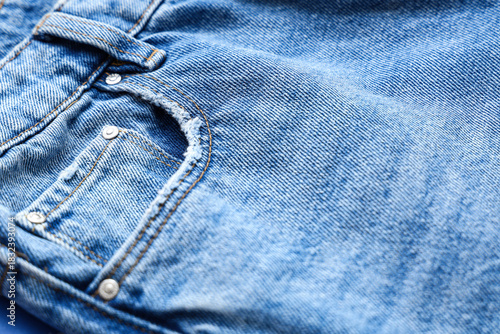 © Pixel-Shot, Naklejka premium Stylish jeans as background, closeup