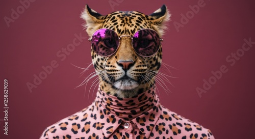 Fototapeta premium Stylish Leopard in Sunglasses and Shirt