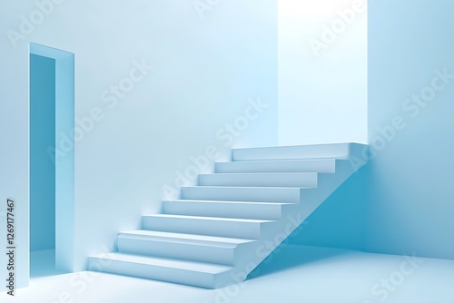 © masud, Obraz premium Stylish Light Blue Staircase Design