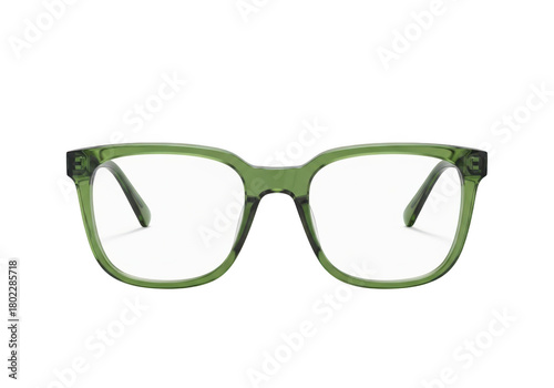 © sujon1638, Fototapeta premium Stylish light green framed eyeglasses with clear lenses presented as a single object isolated on transparent background