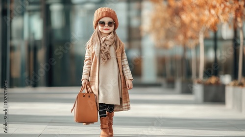 © yusufadi, Fototapeta premium Stylish Little Girl in Autumn Outfit
