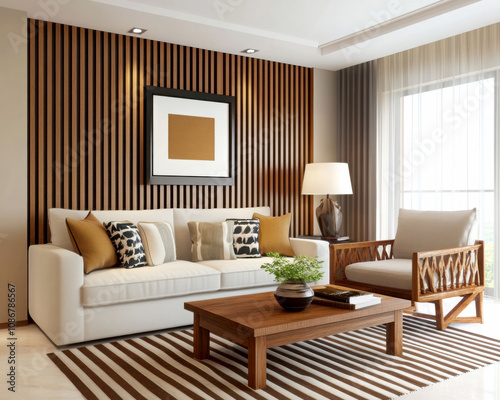Fototapeta premium Stylish living room design with modern furniture and decor.
