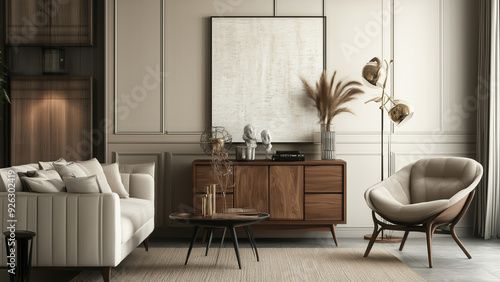 Fototapeta premium Stylish Living Room with Wooden Commode