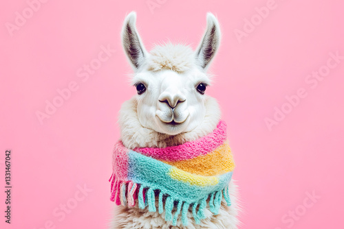 Fototapeta premium Stylish Llama in Colorful Scarf