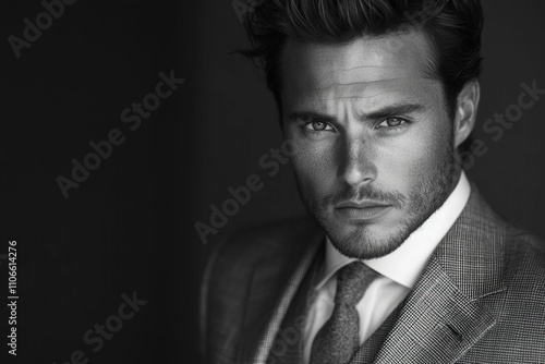 Fototapeta premium Stylish Man in Formal Attire with Intense Expression