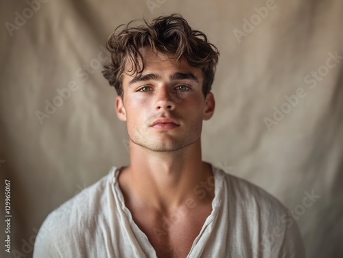 © Akash, Fototapeta premium Stylish man soft-focus muted beige
