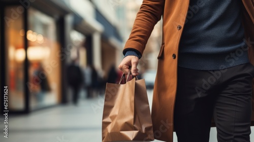 Naklejka premium Stylish man walking with shopping bags