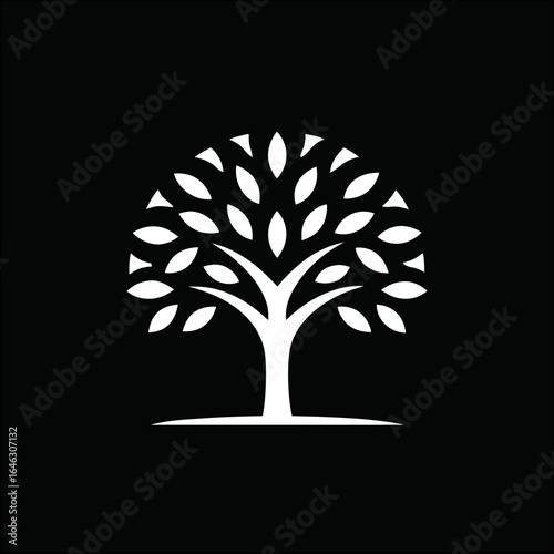 © Muhammad, Naklejka premium Stylish minimal nature tree emblem on black for organic packaging and botanical product design.