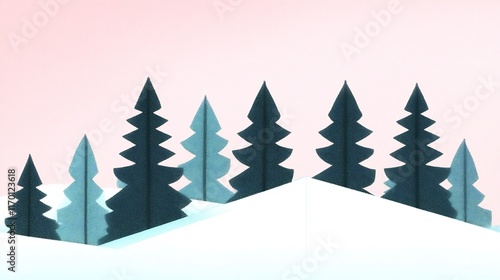 © heinng, Naklejka premium Stylish Minimalist 3D Render of Winter Trees on Soft Pink Background. AI Generated